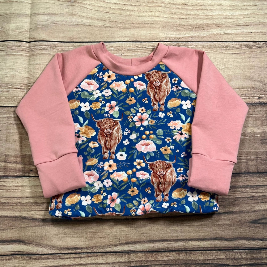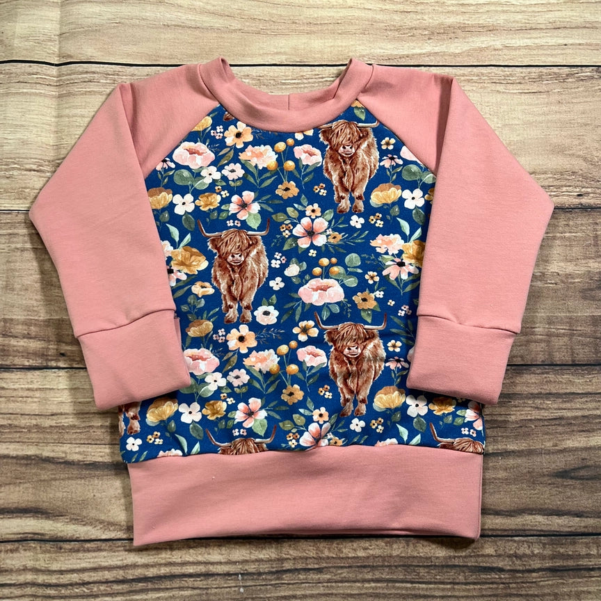 18 Month - 4 Year Highland Cows Blue Grow With Me Sweater